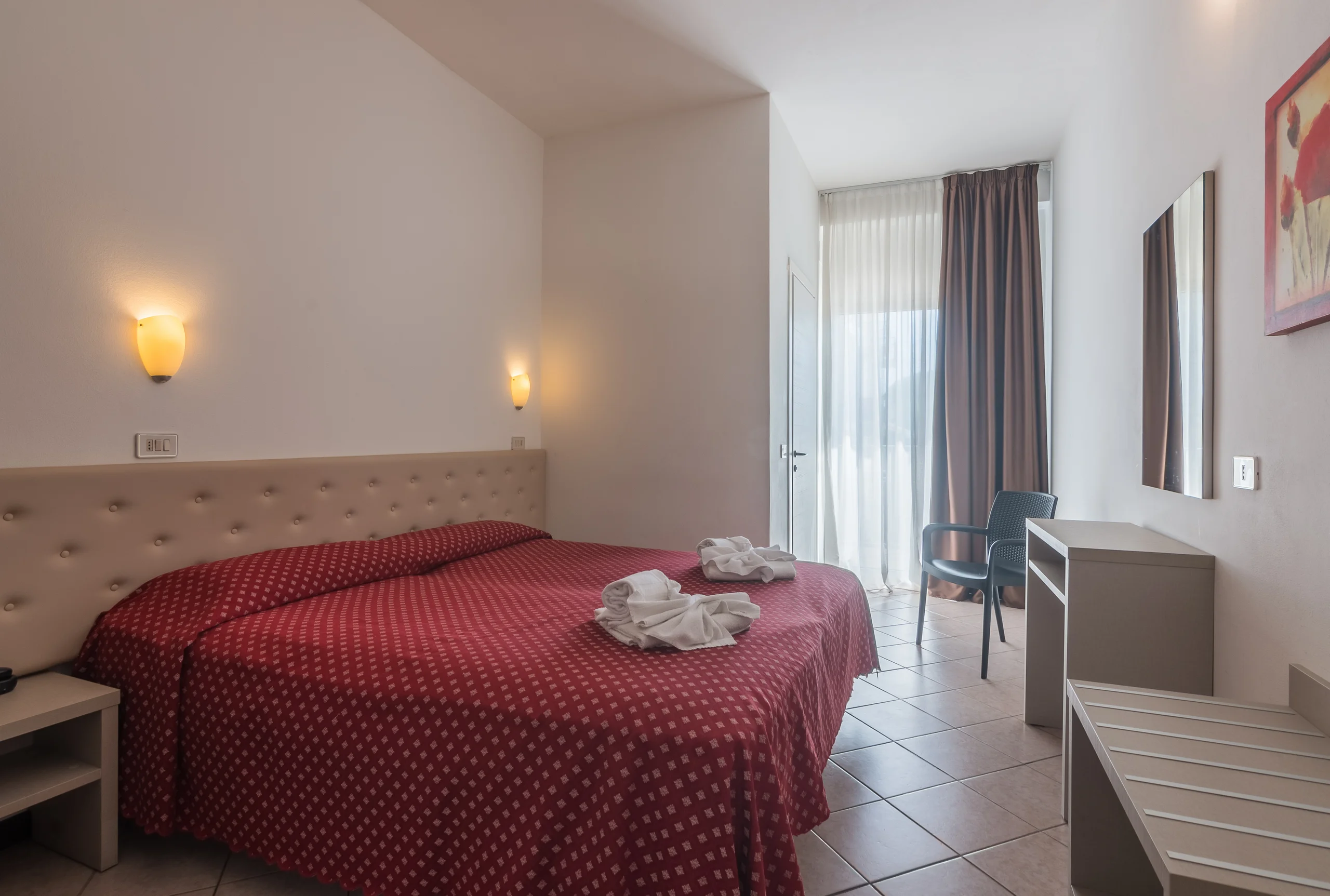 La camera per chi vuole il mare di Viserba senza cercare altro. Funzionale, pulita, con balcone affacciato sul passeggio.